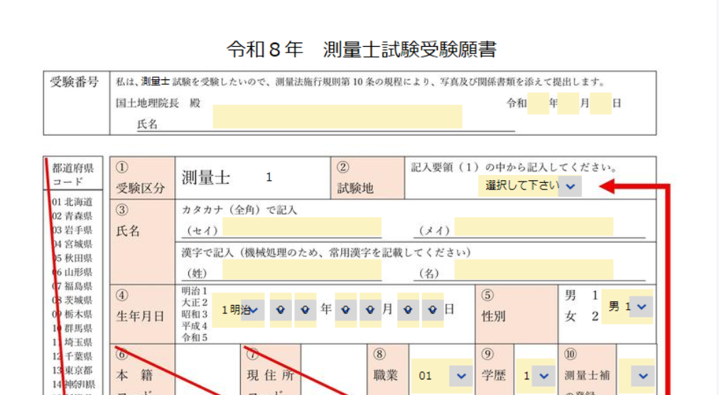 特に、都道府県コードと試験地コードは、入れ間違えに注意してください!(今年からかなり分かりやすくなってます!)例えば、都道府県コード13は「東京」ですが、試験地コード13は「鹿児島」になります。